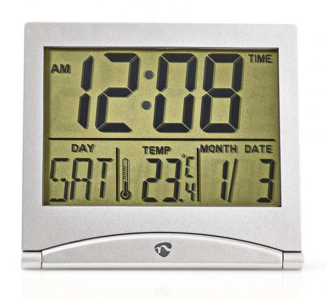 S tímto digitálním budíkem již nikdy nezmeškáte obchodní jednání v zahraničí, výlet snů nebo ranní let domů. Je skládací a v kombinaci s jeho kompaktní velikostí se vměstná do každého zavazadla. Je napájený 1 CR2025 baterií, která je součástí balení. Navíc mimo hodin a alarmu ukazuje datum, slovně den v týdnu (v angličtině) a aktualní teplotu v místnosti (°C/°F).