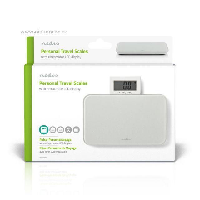 Cestovní osobní váha Nedis PESC113DWT s vysoce přesným tenzometrickým snímačem pro rychlou kontrolu hmotnosti. Díky svým kompaktním rozměrům je vhodná na cesty nebo do malých koupelen. Váha je vybavena zasouvacím LCD displejem. Váží  do maximální hmotnosti 150 kg s přesností 100 g. Bílý skleněný povrch je elegantní a snadno se čistí. Materiál bílá skleněná deska.