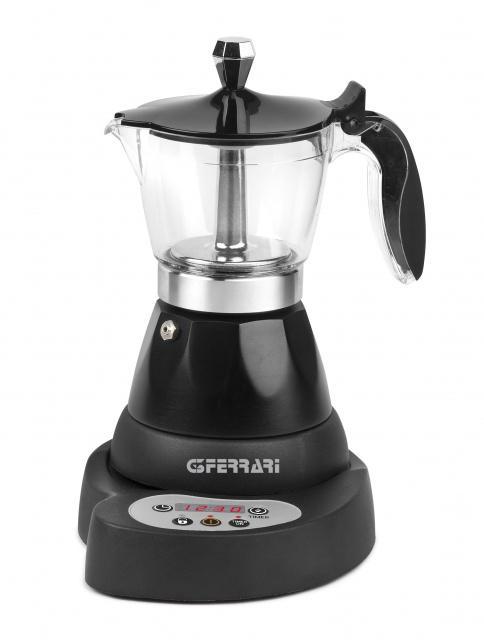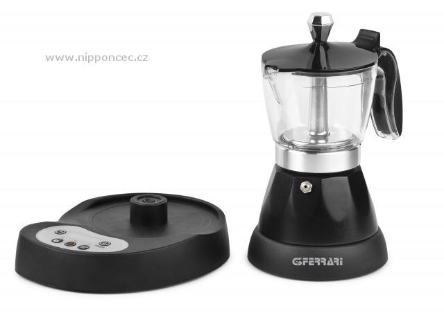 Elektrický přetlakový kávovar G3 Ferrari Risveglio na 1 nebo 3 mocca šálky pravého italského espressa. Horní část kávovaru je horkuodolného polykarbonátu, přípravu svého oblíbeného nápoje můžete i sledovat. Kapacita kávovaru je 1 nebo 3 mocca šálky. Součástí kávovaru je redukce - na 1 nebo 3 šálky. Rukojeť moka konvice je izolovaná - zůstává chladná pro komfortní obsluhu a základna s elektrickým napájením je 360 stupňů otočná, vhodná pro leváky i praváky. Elektrická moka konvička je vybavena světelnou kontrolkou provozu a automatickým vypnutím a pojistným ventilem pro bezpečné použití. LED display a elektronické ovládání - funkce udržování teplé kávy 30 minut.