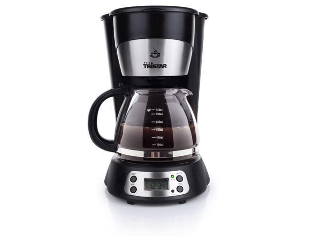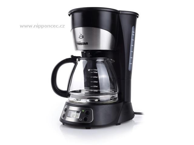 Kávovar Tristar v provedení z černého horkuodolného plastu, s dekorativními prvky z nerezové oceli, s výkonem 800W. Vhodný pro 10 šálků vynikající překapávané kávy. Výbava kávovaru Tristar: ventil s ochranou proti nechtěnému odkapávání, odnímatelný permanentní filtr, takže není nutno používat filtry papírové, nerezová termokonvice s obsahem 1 litr a zdvojenými stěnami. Ploténka kávovaru má nepřipékavou úpravu na bázi teflonu a kávu udržuje teplou. Kávovar má ukazatel hladiny vody a světelnou kontrolku s přepínačem zapnuto/vypnuto pro komfortní obsluhu. Na spodní části výrobku jsou umístěny protiskluzové nožičky pro bezpečný provoz.