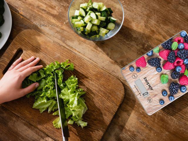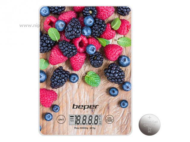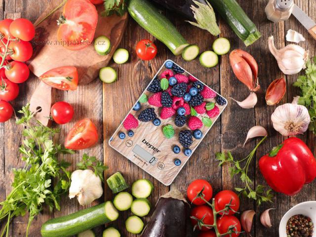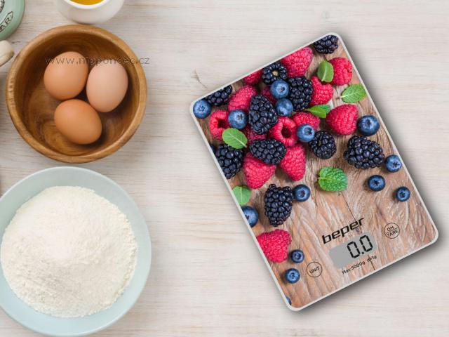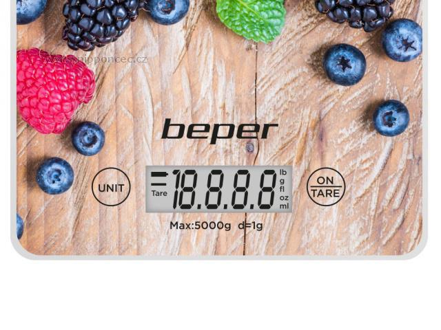 Elektronická kuchyňská váha BEPER BP803 z tvrzeného skla s digitálním displejem je díky vysoce přesnému senzoru vhodná pro vážení potravin od 1 g do 5 kg. Zobrazení hmotnosti můžete volit mezi gramy, librami a uncemi. Funkce TARE umožňuje odstranit z vážení hmotnost nádoby, v které potraviny vážíte. Výsledná hmotnost je tedy pouze vážených potravin bez hmotnosti nádoby. Funkci TARE lze použít i pro dovažování potravin. Dále disponuje automatickým vypnutím, indikací přetížení a detekcí slabé baterie.
