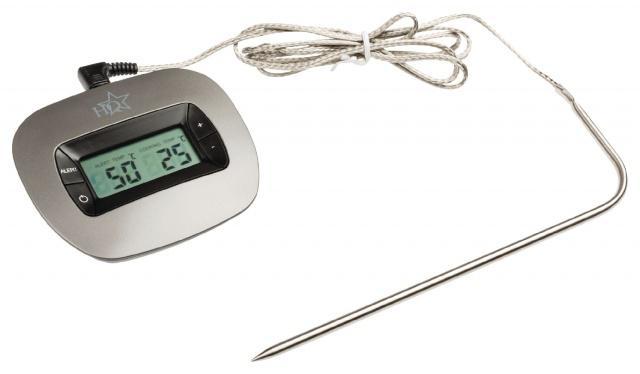 Tento digitální teploměr do trouby má vysoce citlivý snímač a integrovaný procesor zajišťující přesné změření teploty. Alarm pro teplotu a funkce kuchyňské minutky vám pomohou snadno dosáhnout požadované teploty při vaření. Délka kabelu 1,15 m.