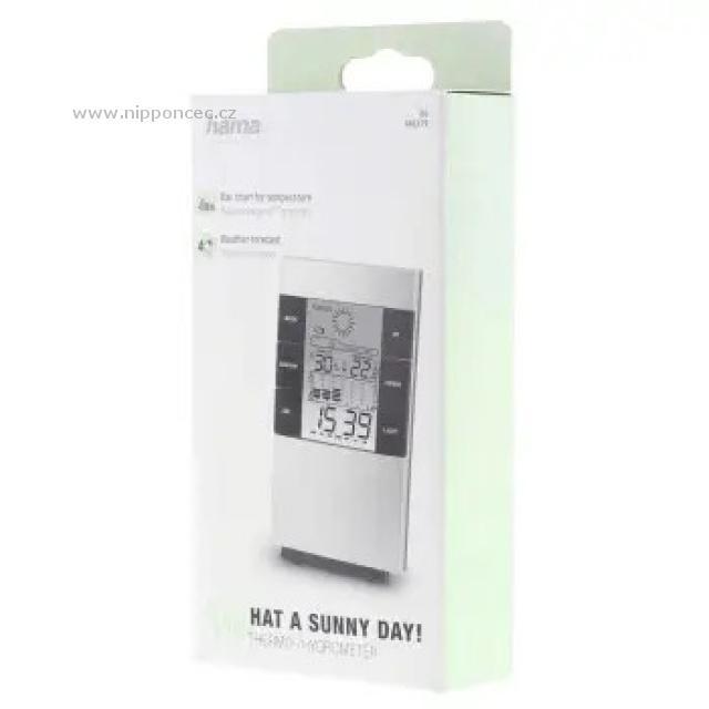 Digitální teploměr Hama TH-200 je určen k měření teploty a vlhkosti vzduchu se zobrazením času, data, dne v týdnu a vývoje teploty vzduchu. Teploměr je dále vybaven budíkem s funkcí odloženého startu. Přístroj lze volně postavit nebo zavěsit na zeď.