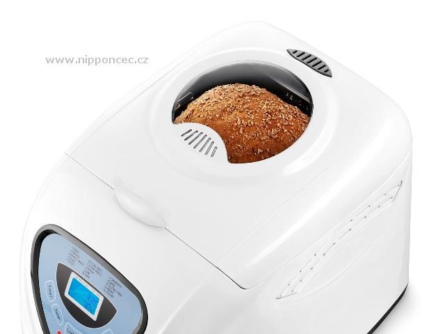 Můžete zvolit ze dvou velikostí chleba. Velmi praktická je funkce pojistky na 10 minut při výpadku elektrického proudu, a funkce udržování teploty 60 minut po dokončení pečení. Pekárna je jednoháková. Nádobu na pečení s nepřipékavým povrchem na bázi teflonu lze snadno vyjmout a omýt. Součástí balení je odměrka a kalíšek na tekutiny. Digitální programy domácí pekárny zahrnují např. chléb celozrnný, francouzský, bílý chléb, jogurtový, sladký, bezlepkový a mnoho dalších.