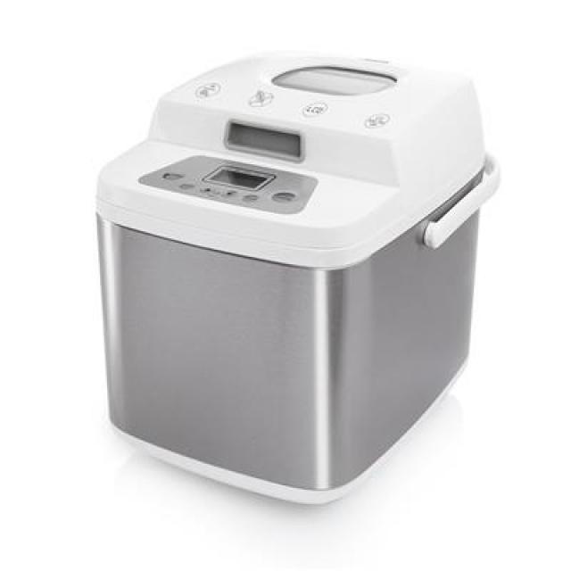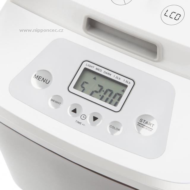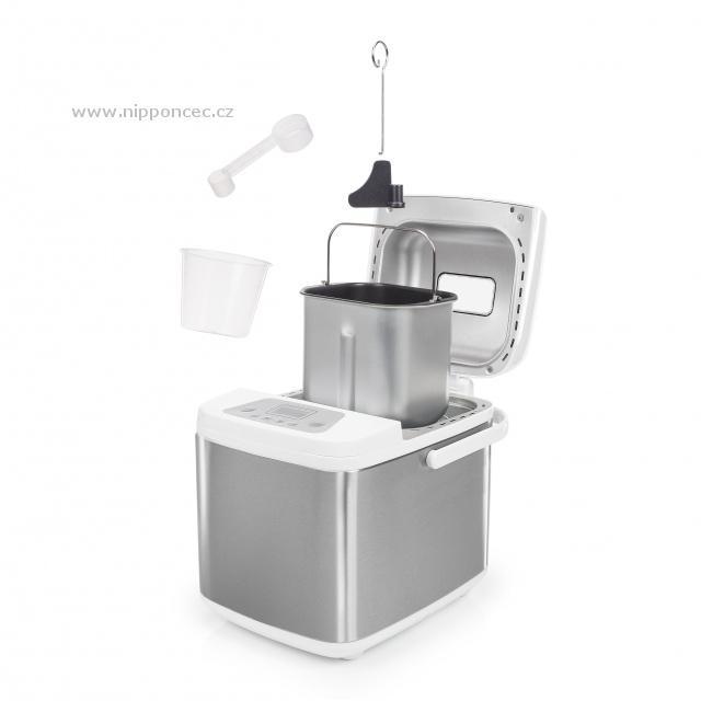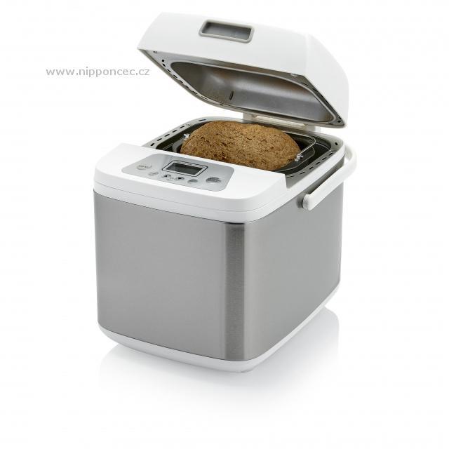Na displey si můžete zvolit velikost chleba až do hmotnosti 750 g. Velmi praktická je funkce pojistky na 10 minut při výpadku elektrického proudu, a funkce udržování teploty 60 minut po dokončení pečení. Pekárna je jednoháková. Nádobu na pečení s nepřipékavým povrchem na bázi teflonu lze snadno vyjmout a omýt. Součástí balení je odměrka a kalíšek na tekutiny. Digitální programy domácí pekárny zahrnují např. ultrarychlé a rychlé pečení, program pro základní bílé a směsné chléby, chléby na sladko, rýžový chléb,  kukuřičný chléb, chleba z bezlepkové mouky, francouzský chléb, program pro koláč zahrnující hnětení a kynutí a programy pro výrobu jogurtu, marmelád a ovesné kaše.