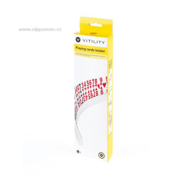 Držák na hrací karty Vitility 70410070 je praktická pomůcka pro všechny milovníky karetních her. Můžete umístit karty přímo do něj a nemusíte je držet v ruce. Držák si položíte před sebe na stůl a skvěle tak uvidíte své karty. Vhodné pro osoby se sníženým citem v ruce a děti, které ještě neumí karty správně držet. Držák na hrací karty se skládá ze 3 částí, které musíte zasunout k sobě.