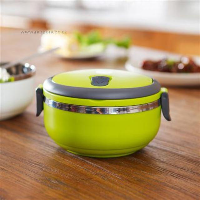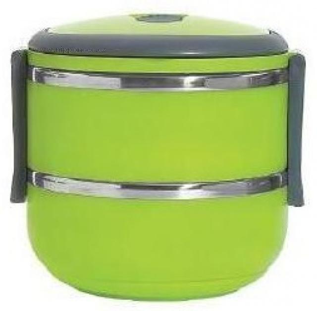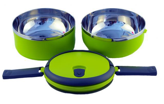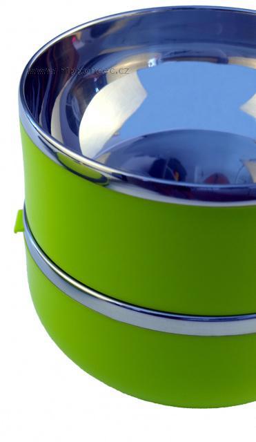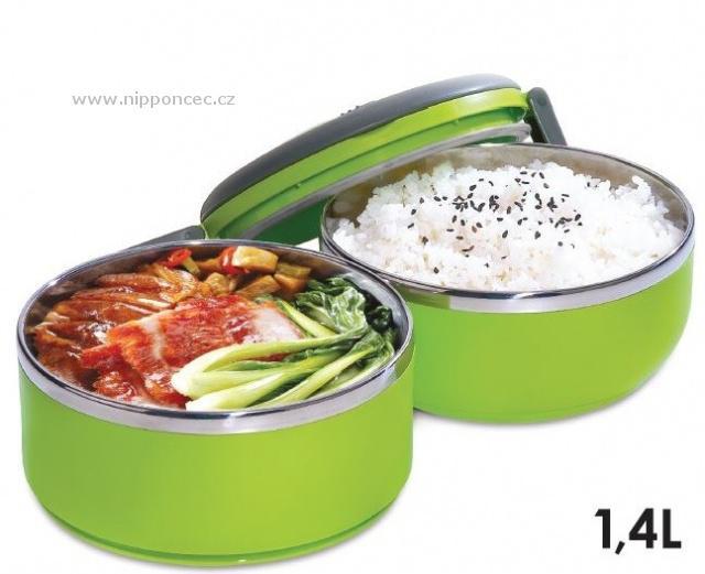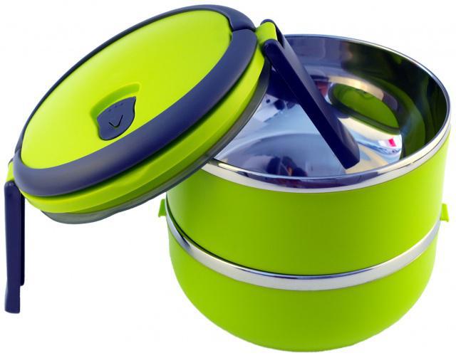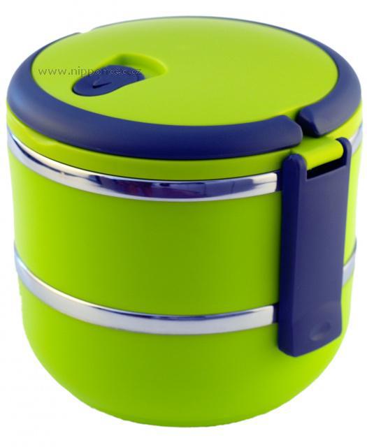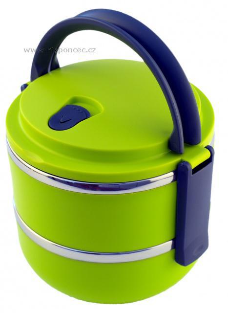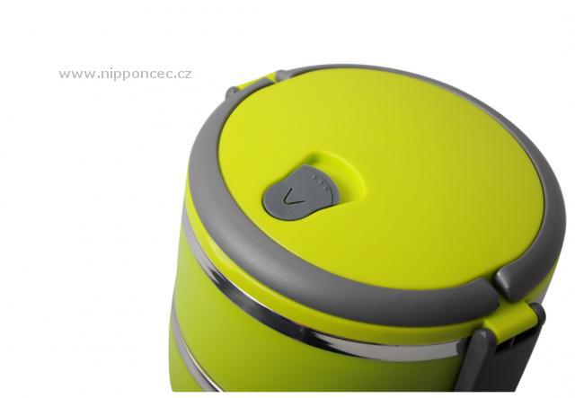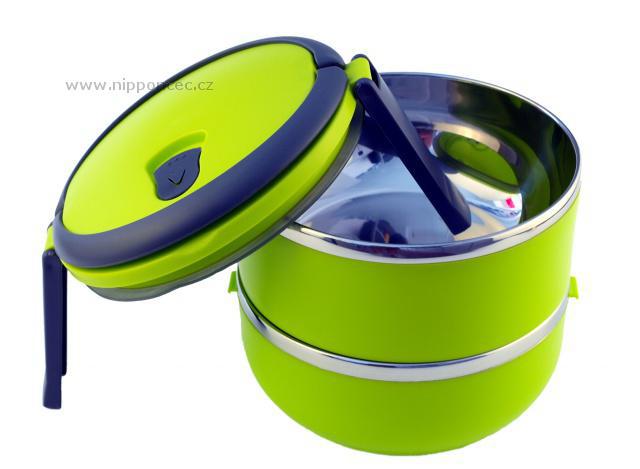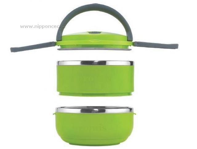 Velmi praktický dvoupatrový a hermeticky uzavíratelný box pro přenášení potravin. Celkový objem nádob je 1,4 litru. Vyrobeno z nerezové oceli a netoxického bezpečného polypropylenu. Má praktické držadlo pro snadný transport. Udržuje teplotu jídla přibližně 2-3 hodiny. Okraje přepravní nádoby tvoří nerezová ocel. Těsnění ve víku těsní na 100 %. Ve víku je umístěný speciální otvor (vakuový ventil), pro zachování čerstvosti potravin. Výška obou nádob je 7 cm, jejich průměr 14,5 cm a celková výška včetně víka je 17 cm.