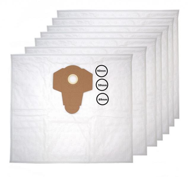 Sáčky do vysavače Parkside, Einhell... 48x42cm textilní 7ks Náhradní textilní sáčky 7ks v balení, jsou určeny pro všechny hrncové vysavače s objemem nádoby 12L, 15L, 20L až 25L. Sáčky jsou osazeny vylamovací přírubou pro odlišné průměry trubky, na kterou sáček nasazujete - 40 mm, 59 mm a 60 mm, můžete tedy velikost sacího otvoru optimálně přizpůsobit pro váš vysavač. Sáčky mají rozměry šíře 48 cm, výška 42 cm a jsou vyrobeny z vícevrstvé netkané textilie s vynikající kvalitou a pevností dobrou optimální filtraci.