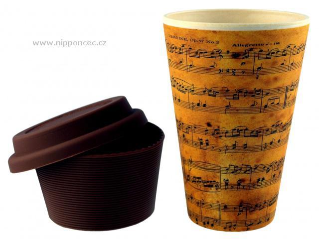 Buďte in s tímto ekologickým hrnečkem v hravém designu s notovým zápisem. Bezespornou výhodou hrnečku je, že udrží teplo podstatně déle než běžný papírový hrníček. Vyroben je čistě z přírodních materiálů a to z organických přírodních bambusových vláken v kombinaci s kukuřičným škrobem a pryskyřicí z aminokyselin. Neobsahuje bisfenol ani ftaláty. A právě díky tomu je biorozložitelný v přírodě. Součástí hrníčku je silikonové víčko a objímka, pomocí které je hrneček snadno uchopitelný a nevyklouzne z ruky. Objem hrnečku činí 400 ml. Parádní dárek pro milovníka hudby a přírody.