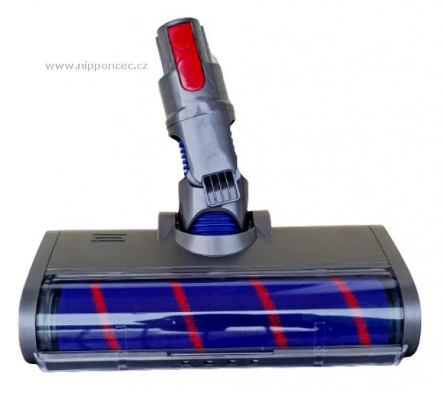 Hubice pro Dyson V15, V11, V10, V8, V7 na tvrdé podlahy, motorizovaná s LED světlem - elektrický měkký rotační kartáč Rotační neoriginální elektrická hubice s tichým a výkonným motorkem je určena pro akumulátorové vysavače DYSON V15, DYSON V11, DYSON V10, DYSON V8, DYSON V7 řady. U vysavačů DYSON V12 ji lze použít s využitím redukce. Tento výjimečně měkký motorizovaný kartáč je dobrým pomocníkem pro rychlé a důkladné čistění laminátových podlah, parket, dlaždic i PVC. Z tvrdých podlah odstraní bez poškození povrchu prach i špínu. Disponuje extra širokým měkkým válcem který nepoškodí ani citlivé povrchy. Využít ji lze i na koberce s krátkým vlasem. Hubice je vybavena větším manévrovacím kolečkem a dvěma distančními kolečky - s jemnou povrchovou úpravou a velurovými kluznými proužky. Speciální naklápěcí a otočný kloub je ideální i pro vysávání rohů. Měkký váleček lze z boku vyjmout a omýt pod tekoucí vodou. 4 LED světla, umístěná na přední straně kartáče, usnadní úklid hůře osvětlených míst.