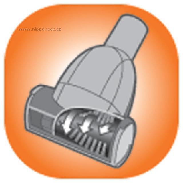 - rotační malý turbo kartáč - který dobře odstraní chlupy, drobky a jiné nečistoty z čalounění, vynikající jak pro vodorovné tak svislé povrchy