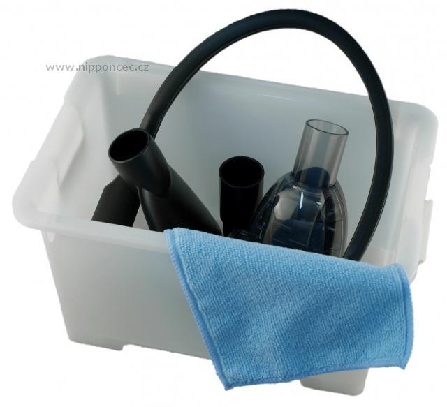 - rukavice z mikrovlákna - s hrubší stranou a jemnější stranou - pro údržbu plastových dílů a skel automobilu, speciální hubici na vysávání čalounění