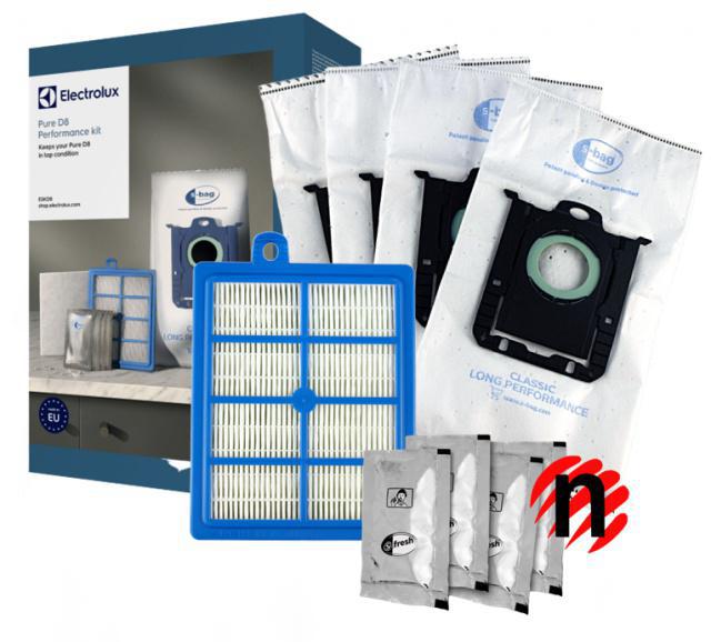 Electrolux ESKD8: Sáčky S-Bag + HEPA filtr H12 omývatelný 4+1ks v originál sadě pro vysavače Electrolux/Philips Udržuje svůj S-Bag vysavač ve špičkové kondici. Filtry i sáčky je potřeba pravidelně měnit, aby Váš vysavač podával vždy ty nejlepší výkony. S touto sadou máte vše potřebné k údržbě svého vysavače po celý rok pro optimalizovaný výkon a efektivní filtraci pylu, prachu a alergenů v domácnosti. Sada sáčků, HEPA filtru, filtrů a vůní vyrobená pro novou řadu vysavačů AEG-Electrolux PureD8 je vhodná prro všechny vysavače, osazené sáčky S-Bag a HEPA Filtrem stejného typu.
