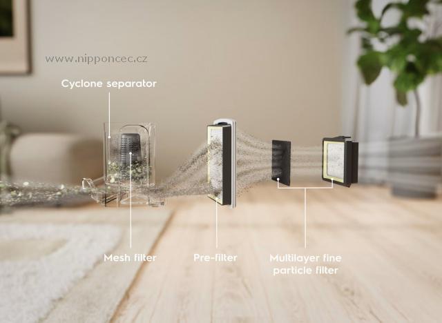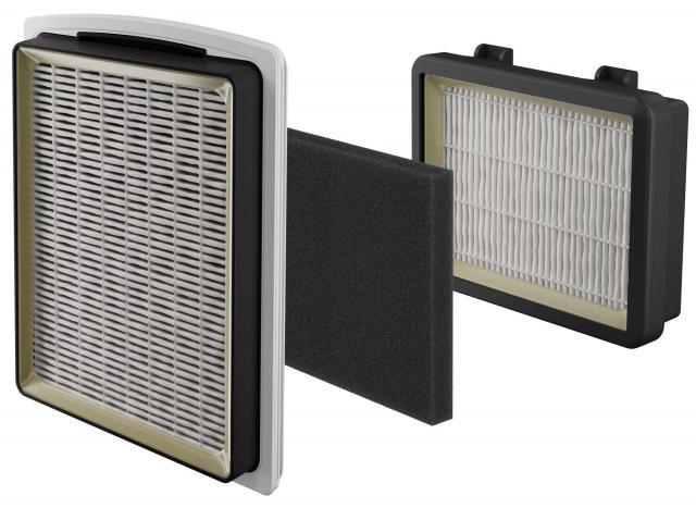 Sada obsahuje omývatelný prachový filtr do nádoby, jenž zachytí všechny větší částice, které uniknou z hlavního cyklu cyklónového čištění (doporučené omytí po každém měsíci používání) a omyvatelný hygienický filtr E10 (HEPA), který zachycuje i ty nejjemnější částice, jako je pyl, spory plísní, výkaly roztočů a alergeny. Součástí sady je i pěnový filtr před hygienický filtr. Tyto filtry čistí vzduch vycházející z vysavače a snižují riziko alergických reakcí. Oba filtry jsou omyvatelné a zaručí čistý vzduch a optimalizovaný výkon. Filtry je doporučeno umýt každé 2 měsíce. Výměna emisního filtru (HEPA filtru) je doporučena po roce užívání. Výměna progresivního (prachového) filtru je doporučena každých 6 měsíc.