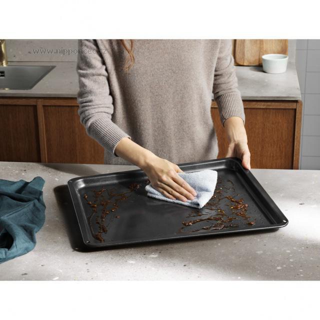 Díky jeho hloubce na něm upečete velké kusy masa nebo celé ryby a umožní vám péct i více jídel najednou. Pro snadné čištění je jeho povrch nepřilnavý. Rozměry (š x v x h) 422 x 370 x 40 mm.