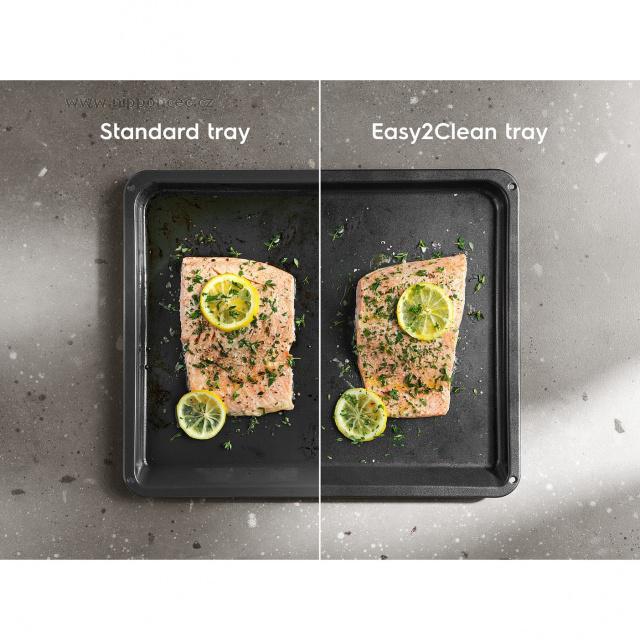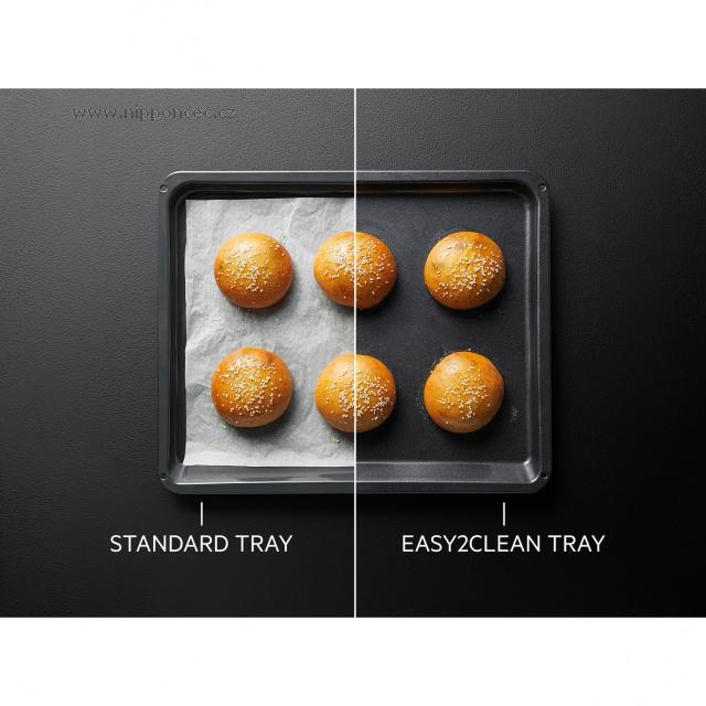 Mělký plech na pečení Electrolux Easy2Clean je vybaven inovativním keramickým nepřilnavým povrchem, díky kterému na něm můžete péct bez vymazání nebo pečicího papíru a ke snadnému čištění vám stačí teplá voda, vlhký hadřík a trocha saponátu. Keramický povrch bez obsahu syntetických sloučenin PTFE a PFOA, proto se nemusíte bát, že při vysokých teplotách bude uvolňovat toxické výpary. Můžete s ním péci bezpečně a s důvěrou.