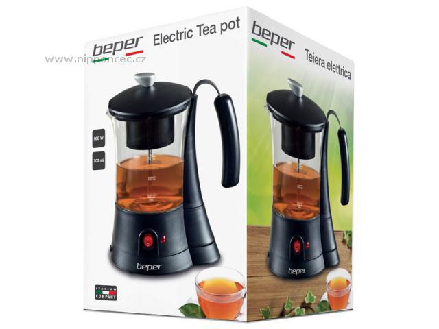 Elektrická konvice na čaj BEPER 90836 se skleněným džbánem o objemu 700 ml a výkonu 600 W je vybavena ochranou proti přehřátí a funkcí udržení teploty. Čaj se v této konvici připravuje za pomoci páry procházející filtrem na čajové lístky, filtr je vyjímatelný a omyvatelný.