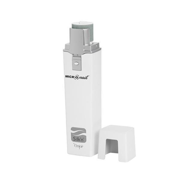 Elektrická leštička nehtů Silk`n Micro Nail. Pomocí rotujících válečků nehty jemně obrousí a následně i vyleští do bohatého lesku. Výsledek je patrný až po dobu dvou týdnů. Přístroj má dva válečky, každý s jinou funkcí. S micro brousícím válečkem a s micro leštícím válečkem. Brousící váleček je šedý a je určen k vyhlazení nerovností na nehtu a vyrovnání jeho plochy. Leštící váleček je bílý a je určen k vyleštění nehtu do krásného zářivého lesku. Elektrická leštička je vhodná pro péči o nehty na rukou i na nohou a lze ji použít i na gelové nehty, akrylové nehty a umělé nehty.