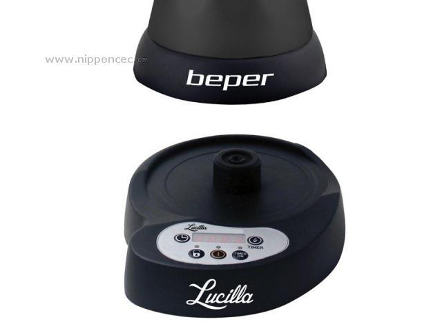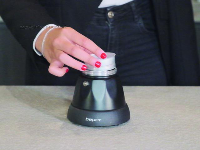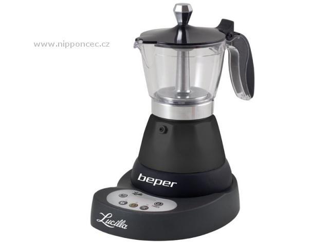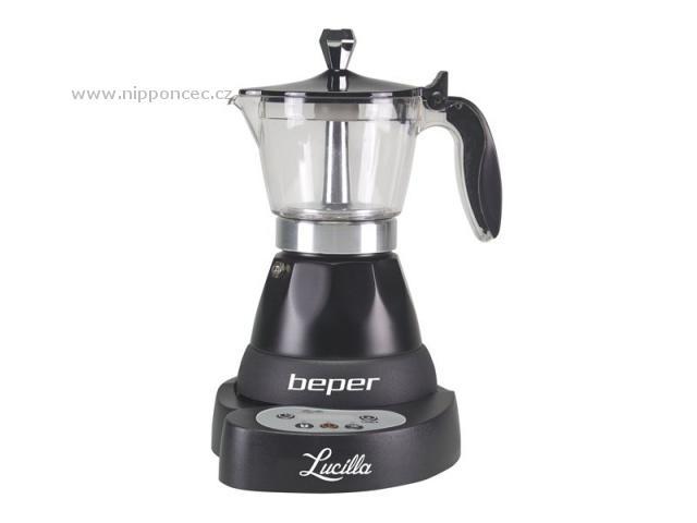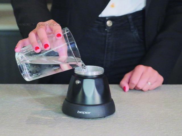 Elektrická Moka konvice BEPER BC041-N je vhodná pro přípravu 3 šálků lahodné kávy. Součástí balení je redukce pro přípravu 1 šálku kávy. Moka konvička je bezdrátová, pro spuštění výroby kávy slouží stojan s 360° otočnou základnou a přívodním kabelem. Disponuje LCD displejem, který umožňuje naprogramování kávovaru až na 24 hodin. Kávu je možné po uvaření dalších 30 minut udržet teplou. Jakmile je zásobník vody v kávovaru prázdný, kávovar aktivuje funkci udržení teploty po dobu 30 minut a následně se automaticky vypne. Ideální do domácnosti i do kanceláře.
