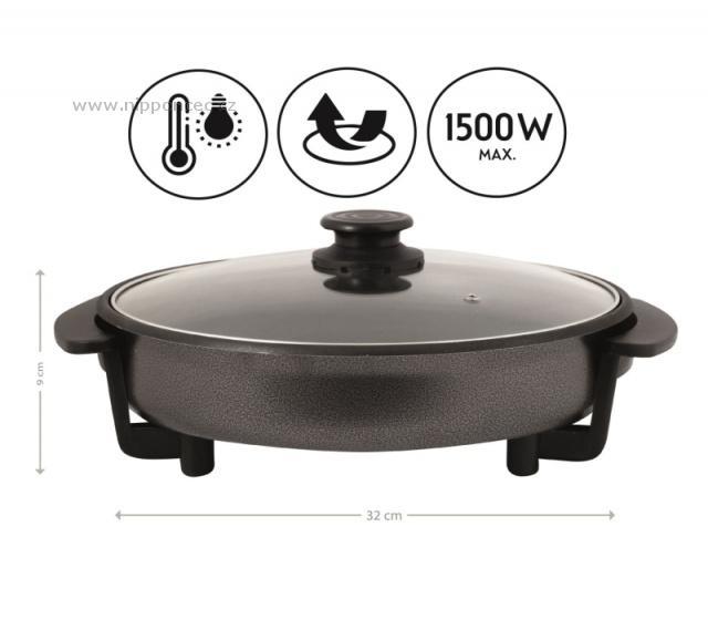 Elektrická multifunkční pečící pánev First Austria FA-5109-1 o průměru 32 cm je ideální na přípravu křupavé pizzy, omelet, masa nebo paelly. Teplotu pánve lze regulovat nastavitelným termostatem. Součástí pánve je i skleněná poklice, které vám umožňuje větší kontrolu nad vařením.