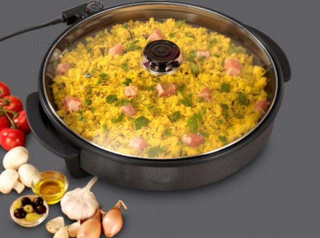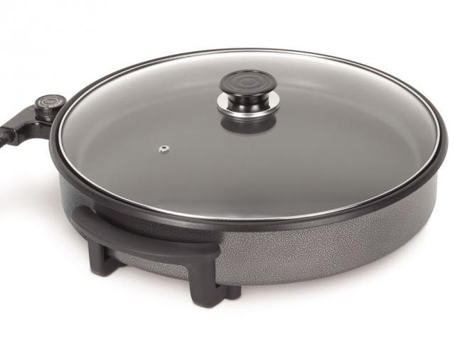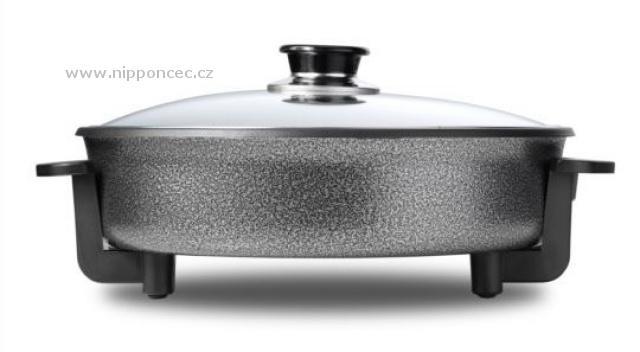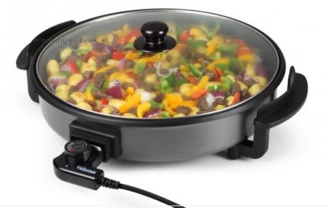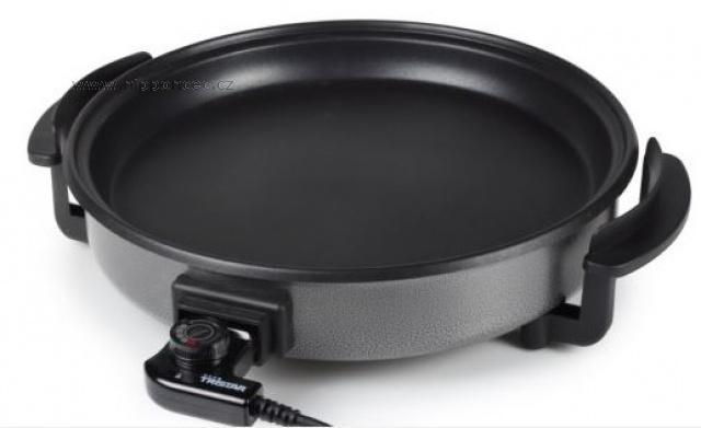 Elektrická pečicí pánev je vyrobená z robustního kovu potaženého kvalitní nepřipékavou úpravou na bázi teflonu. Elektrická pánev Tristar má odnímatelný přívodní kabel s přesný nastavitelným termostatem pro jednoduchou údržbu a skleněné víko z masivního skla s parním ventilem pro komfortní obsluhu.