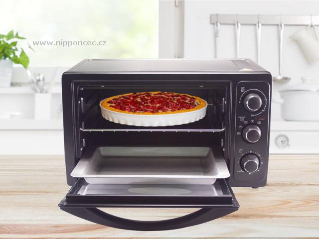 Objem 45 litrů, časovač 60 minut se zvukovým signálem, rošt, plech, 2000 W.
