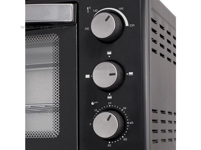Výkon trouby je 1380W, termostat je nastavitelný 100 - 230 st. Celsia. Dvířka mají masivní madlo, sklo dvířek je zdvojené. Součástí dodávky grilovací rošt s odnímatelnou rukojetí, plech na pečení . Na předním panelu je umístěna světelná kontrolka provozu, na spodní části jsou protiskluzové nožky pro bezpečné postavení na kuchyňské desce. Povrch trouby se dobře udržuje. Využijete nejen v domácnosti, ale i na chatu či chalupu. Praktická velikost a malé rozměry.