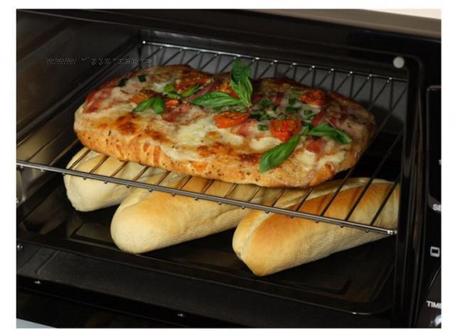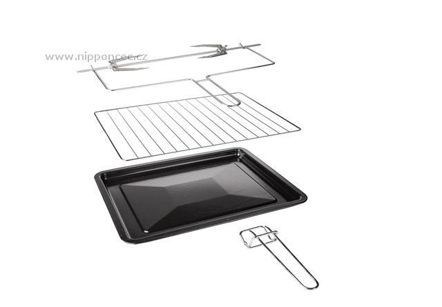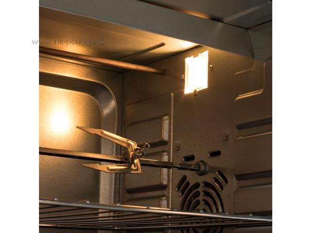 Výkon trouby je 2000W, termostat je nastavitelný 100 - 230 st. Celsia. Dvířka mají masivní madlo, sklo dvířek je zdvojené. Součástí dodávky grilovací rošt s odnímatelnou rukojetí, plech na pečení . Na předním panelu je umístěna světelná kontrolka provozu, na spodní části jsou protiskluzové nožky pro bezpečné postavení na kuchyňské desce. Trouba má vynikající vybavení - 6 stupňů nastavení teploty, vnitřní osvětlení, funkce rozmrazování, funkce horkého vzduchu, funkce otočného grilu, nastavitelný časovač.... Vynikající poměr cena ku výkon!