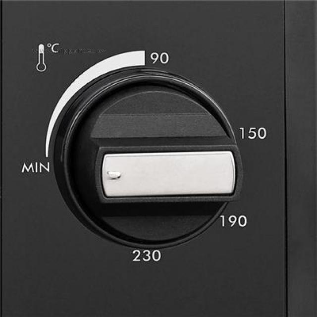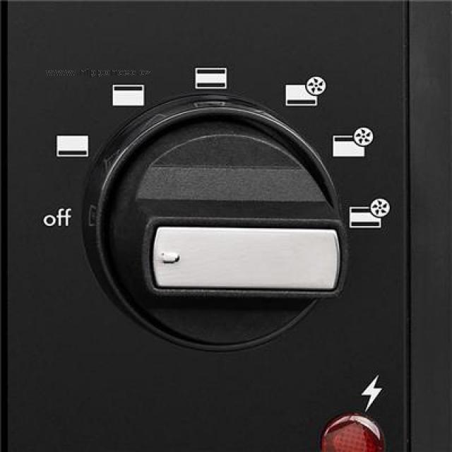 Termostat je nastavitelný v rozsahu 0 - 230°C. Dvířka mají masivní madlo a sklo dvířek je zdvojené. Součástí dodávky grilovací rošt s odnímatelnou rukojetí a plech na pečení. Na předním panelu je umístěna světelná kontrolka provozu, na spodní části jsou protiskluzové nožky pro bezpečné postavení na kuchyňské desce. Trouba má vynikající vybavení - 6 programů ohřevu, vnitřní osvětlení, funkce rozmrazování, funkce horkého vzduchu,nastavitelný časovač. Vynikající poměr cena ku výkon!
