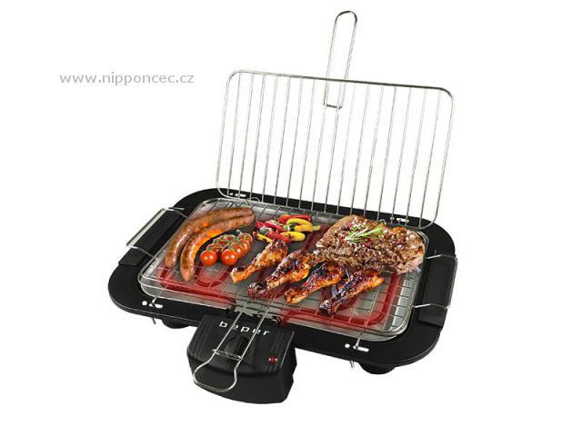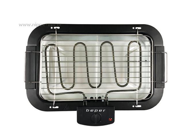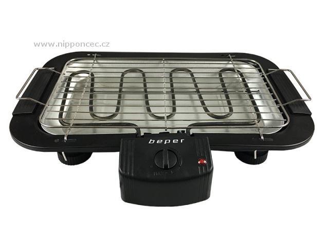 Elektrický BBQ gril BEPER BT403 s výkonem 2000 W a s grilovací plochou 38 x 22 cm. Gril disponuje nastavitelným termostatem a bezpečnostním spínačem, který zajistí bezpečné grilování. Výšku roštu lze nastavit ve dvou polohách. Tepelně izolační ocelová rukojeť a 2 grilovací rošty.