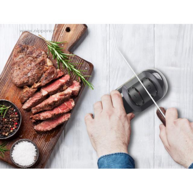 Elektrický brousek na nože s odolnými diamantovými kotouči pro rychlé, přesné a bezpečné broušení. Ostřič nožů nabízí 2 stupně ostření - hrubé a přesné k vyhlazení a leštění nožů. Součástí brousku je i přihrádka s magnetem, která zachytí drobný odpad vznikající při ostření nožů.