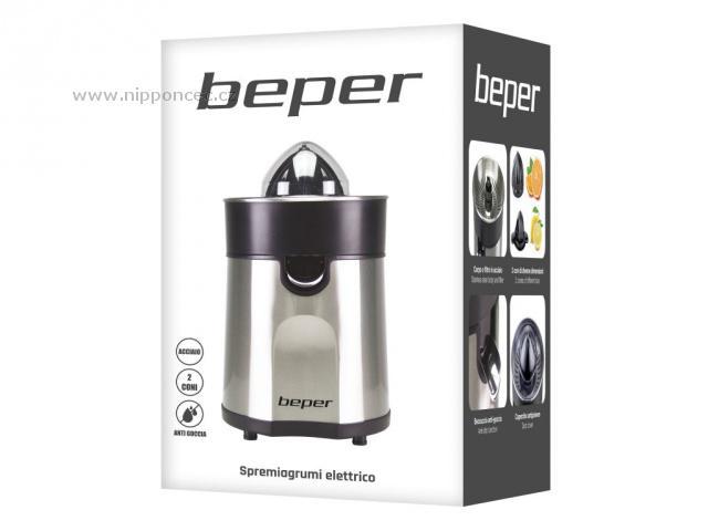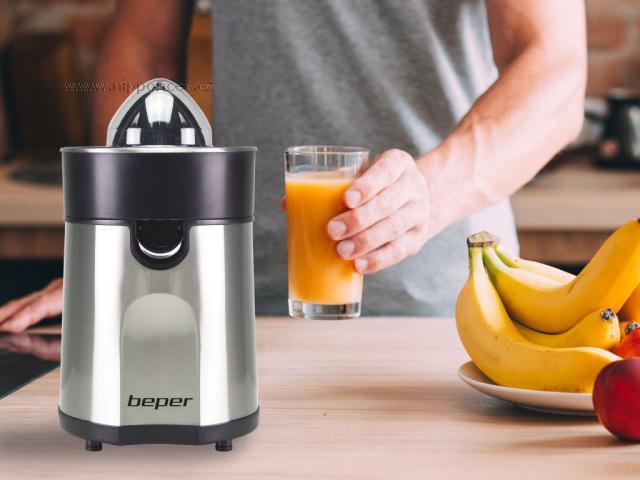 Elektrický lis na citrusy BEPER P102EST001 je vyroben z kvalitního nerezového materiálu, disponuje praktickým uzávěrem proti odkapávání šťávy. Dva různé nástavce pro malé a velké citrusové plody. Stabilitu během používání přístroje vám zajistí praktické protiskluzové nožičky. Dopřejte si i vy z pohodlí domova požitek z připravené vitamínové bomby, která nejen potěší vaše chuťové pohárky, ale zároveň prospěje i vašemu zdraví.