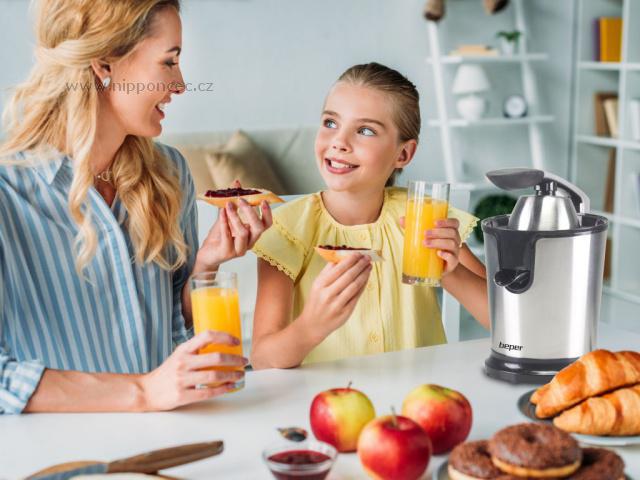 Elektrický lis na citrusy BEPER P102EST010 je vyroben z kvalitního nerezového materiálu, disponuje praktickým uzávěrem proti odkapávání šťávy. Dva různé nástavce pro malé a velké citrusové plody. Stabilitu během používání přístroje vám zajistí praktické protiskluzové nožičky. Dopřejte si i vy z pohodlí domova požitek z připravené vitamínové bomby, která nejen potěší vaše chuťové pohárky, ale zároveň prospěje i vašemu zdraví.