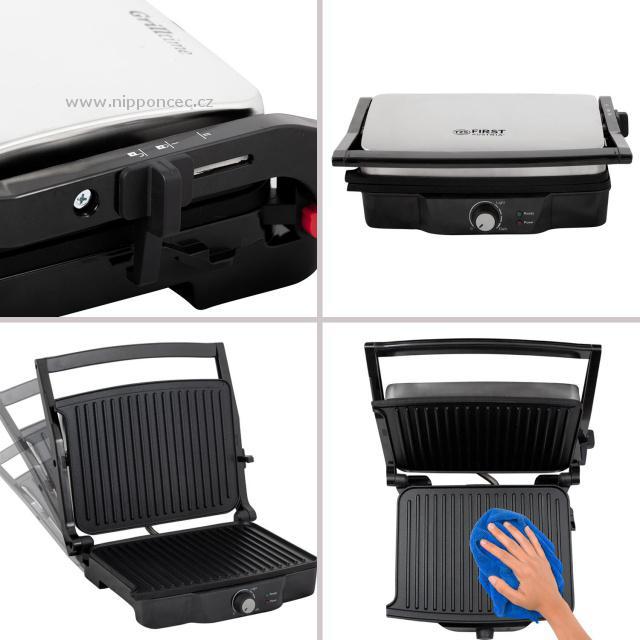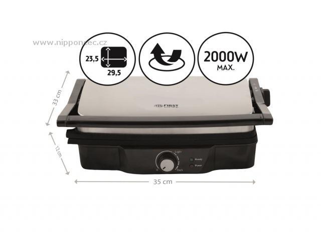 Elektrický gril značky First Austria FA-5344 disponuje plynule nastavitelným termostatem, proto nejste při grilování nijak omezeni. Nepřilnavá povrchová úprava 2 grilovacích plotének na bázi teflonu je samozřejmostí. Gril je plně rozevíratelný, čímž se vytvoří veliká plochá, která dokáže nasytit i početnou rodinu. Nechybí indikátor provozu, který upozorní na zapojení přístroje do elektrické sítě, indikátor nahřátí, který vám dá vědět v případě, že je gril nahřátý na požadovanou teplotu a 2 nádobky na přebytečný tuk.
