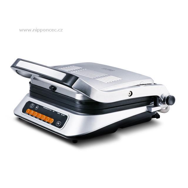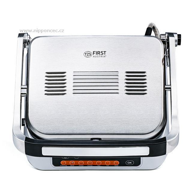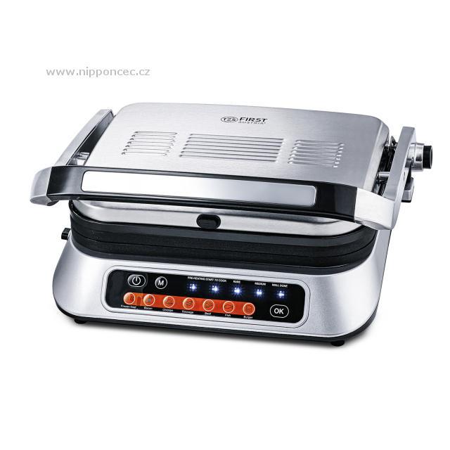 Výkonný kontaktní gril značky First Austria 5344-3 je vybaven technologií měření tloušťky masa, která v kombinaci s volbou vhodného programu automaticky nastaví čas a teplotu grilování. Pomocí kontrolek (rare, medium a well - done) vás gril bude průběžně informovat o stavu propečení vašeho stejku. Grilovací desky mají nepřilnavý povrch a jsou vyjímatelné, grilování je tak zdravější a údržba desek jednodušší. Možnost otevření o 180° pro rozšíření grilovací plochy. S grilem First Austria FA-5344-3 dosáhnete skvělých výsledků při přípravě masa, sendvičů či jiných pokrmů.