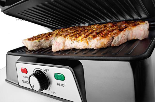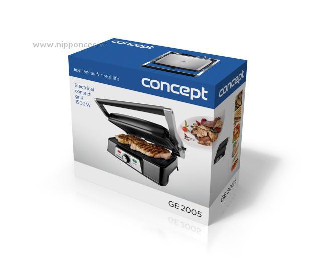 Snadné čištění, regulátor teploty, možnost grilovat na obou plotnách zároveň. Elektrický kontaktní gril Concept GE2005je všestranný pomocník, který vám ulehčí práci v kuchyni.