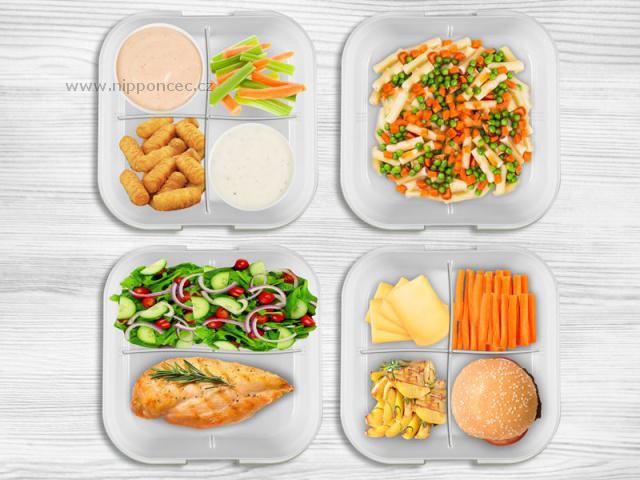 Snadný transport vlastních potravin, vhodné pro saláty i teplá jídla, okamžitý ohřev doma i v automobilu