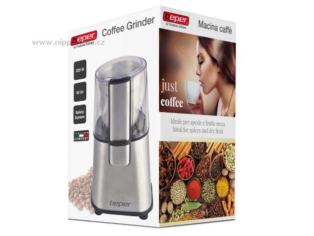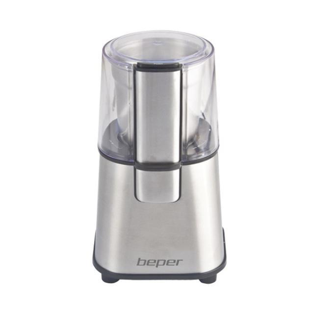 Mlýnek na kávu Beper 90525 s kapacitou 60 g kávových zrn. Tělo a čepele kávomlýnku jsou vyrobeny z nerezové oceli. Mlýnek je vhodný pro jemné mletí kávy, ale i sušeného ovoce, koření, semínek a ořechů. Dno spotřebiče je vybaveno protiskluzovou základnou pro zajištění stability. Zda bude vaše káva namleta na jemno či na hrubo ovlivníte délkou mletí - přidržením ovládacího tlačítka. Kontrolu nad úrovní mletí získáte díky průhlednému víku.