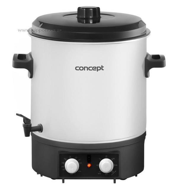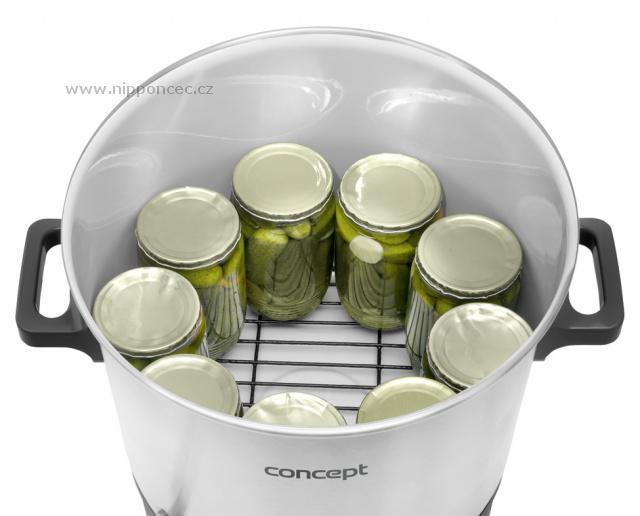 Režim udržení teploty (KEEP WARM), časovač, zvuková signalizace.    Elektrický nerezový zavařovací hrnec Concept ZH0030 si poradí nejen se zavařováním a sterilizací ovoce a zeleniny, ale i hub, masa, marmelád nebo džemů.