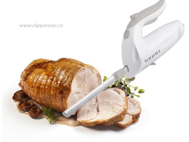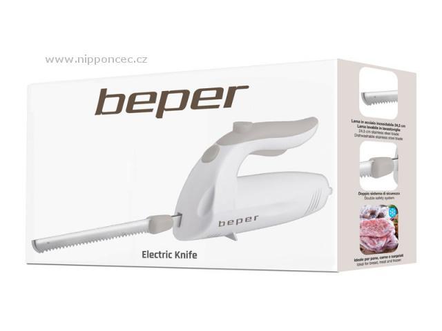 Elektrický nůž BEPER BP790 vám umožní snadno krájet různé druhy masa, chleba a drůbeže. Je vybaven dvojitým bezpečnostní systém při spuštění, samoostřícími čepelemi z nerezové oceli o délce 24,5 cm a tlačítkem pro vysunutí čepelí pro snadnou údržbu. Rukojeť nože je ergonomická, díky tomu se nůž dobře drží v ruce. Součástí dodávky je pouzdro na čepele. Čepele nože lze mýt v myčce nádobí.
