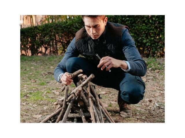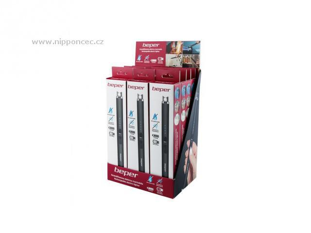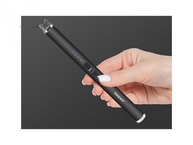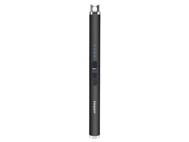 Dobíjecí elektrický zapalovač Beper P201UTP020 pro vnitřní i venkovní použití. Elegantní design, který kombinuje praktičnost a eleganci díky tělu z hliníku a odolného kvalitního plastu. Absence plamene a plynu společně s bezpečnostním systém, který zabraňuje náhodnému zapálení, činí z tohoto zapalovače ideálního společníka na cesty při všech vašich outdoorových aktivitách! Disponuje dobíjecí baterií. Když se rozsvítí 4 LED kontrolky na hlavni, je plně nabitý, jedno plné nabití prostřednictvím kabelu USB, který je součástí balení, umožňuje až 50 zapálení. Stav baterie lze snadno sledovat prostřednictvím LED indikátorů, které se nacházejí na výrobku. Konstrukce odolná proti větru a stříkající vodě zabraňuje vyfouknutí produkovaného elektrického impulsu silným větrem.