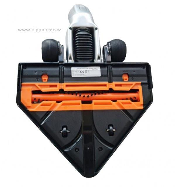 ROWENTA AIR FORCE EXTREME RH8920WO. Ultra tenká hubice Delta je vybavena otočným kartáčem, který sebere každou zašlapanou nečistotu z koberců a kovralů, včetně nití, vlasů, zvířecích chlupů. Její trojúhelníkový tvar je vyvinut pro optimální vysávání v rozích a díky ultra ploché hlavě hravě vysajete prostory pod nízkým nábytkem nebo v zákoutích.