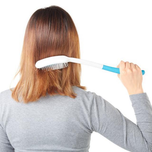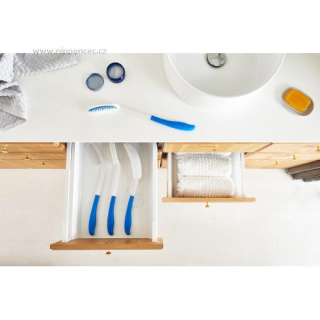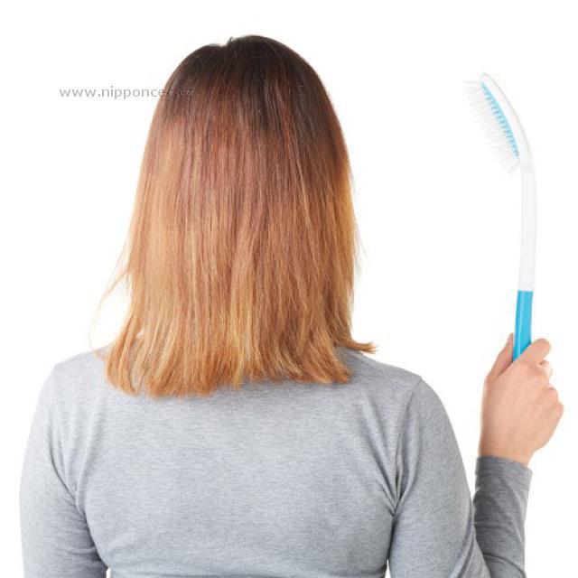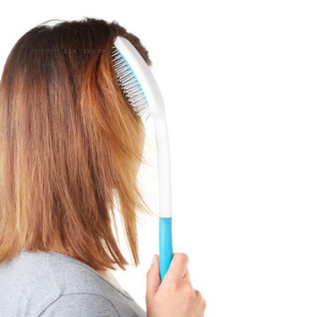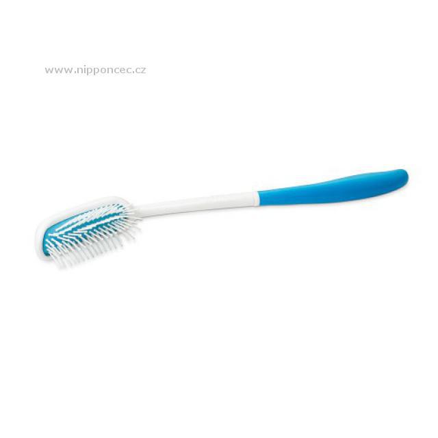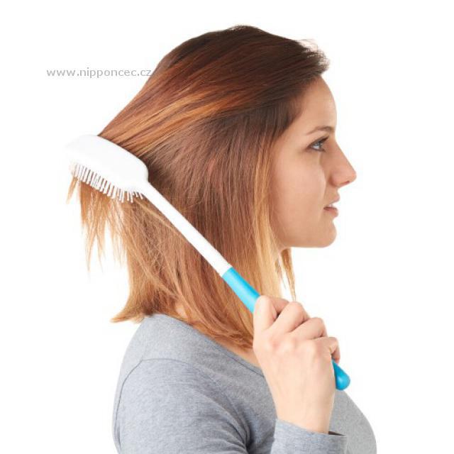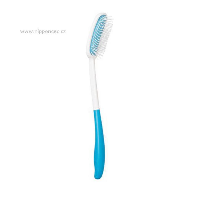 Ergonomicky navržený kartáč s prodlouženou rukojetí zajišťuje, že se s kartáčem bez problémů dostanete k zadní a horní části hlavy a také bez zbytečného namáhání ruky, paže nebo ramena. Protiskluzová rukojeť poskytuje extra jistotu uchopení. Barva modrá/bílá.