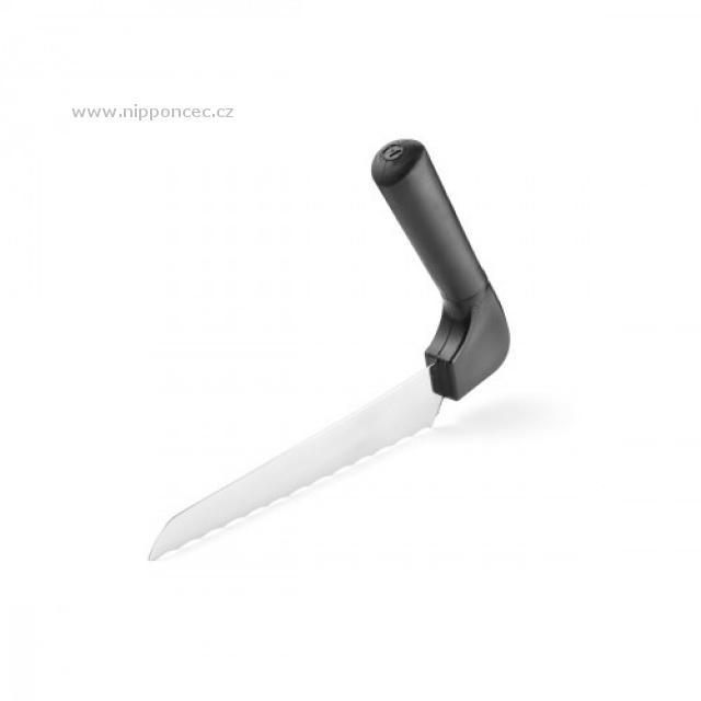 Zahnutá rukojeť pro menší úsilí při krájení, vhodné pro seniory.