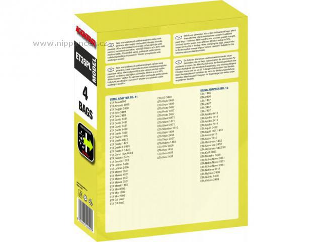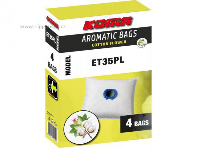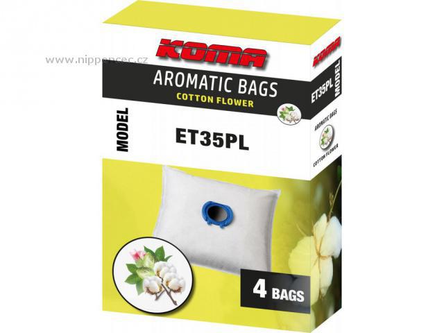 Aromatizované sáčky pro vysavače typu ETA UniBag 9900 68000 s vůní Bavlníkového květu Náhradní sáčky k již zakoupenému adaptéru - bez něj nelze sáčky použít. Prémiové parfémované sáčky do vysavačů KOMA ET35PL. Balení obsahuje 4 ks sáčků se speciální aromatickou úpravou, která již během vysávání provoní Váš domov vůní květu bavlníku. Sáčky jsou vhodné pro vysavače ETA a mnoho dalších modelů s použitím přídavných adaptérů. Adaptér není součástí balení. - 4ks v balení