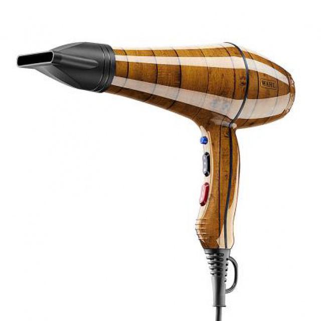 Profesionály používaný fén Wahl Wool Dryer v limitované retro edici s imitací dřeva je spolehlivý vysoušeč vlasů poháněný silným AC motorem. Fén je zabezpečen teplotní pojistkou a ionizačním efektem s turmalínovou technologií. Záporné iontypůsobí antistaticky, jsou šetrné k vlasům, uzavírají jejich povrch a tudíž je vyhlazují a propůjčují jim hedvábný vzhled. S mimořádným průtokem 30m/s vaše vlasy v okamžiku vysuší. Je možné volit ze 2 rychlostí a ze 3 teplotních stupní. Navíc je možnost zvolení samostatného foukání studeného vzduchu nebo rychlého ochlazování horkého vzduchu.