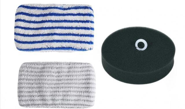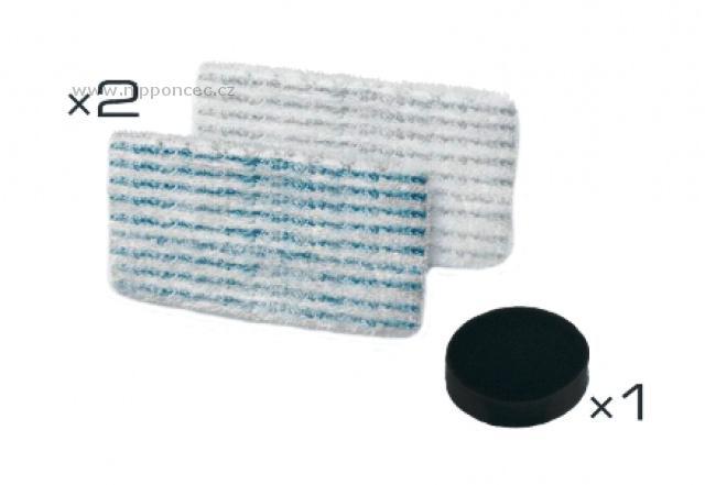 Sada se skládá ze 2 mopů z mikrovlákna a jednoho pěnového filtru. Hadříky lze vyprat v ruce nebo v pračce (za použití šetrného programu) až 100krát. Pěnový filtr je třeba vyměnit každých 6 měsíců podle četnosti vašeho používání přístroje.
