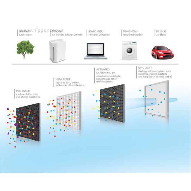 • Filtr HEPA: Zachytává prach, kouř, pyl a jiné alergeny
