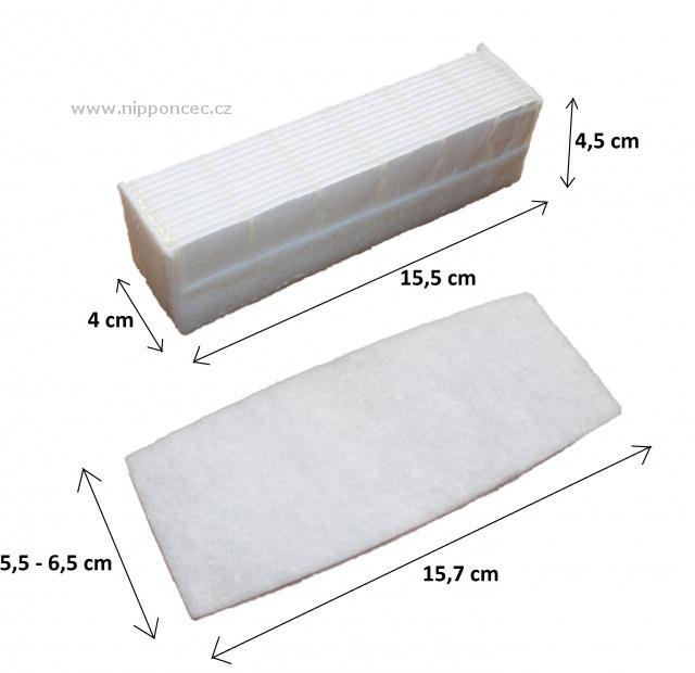 - 1x oválný omývatelný pěnový filtr: rozměry 70 x 35 mm