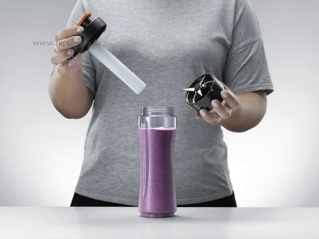 K vašemu sportovnímu mixéru ESB2500 jsou dodávány 2 lahve s víčkem. Další lahve lze dokoupit samostatně, takže každý člen rodiny může mít svoji vlastní. Označte si svou lahev jménem a už si ji nespletete s jinou. Pro každého člena domácnosti jednu lahev, stejně jako zubní kartáček.